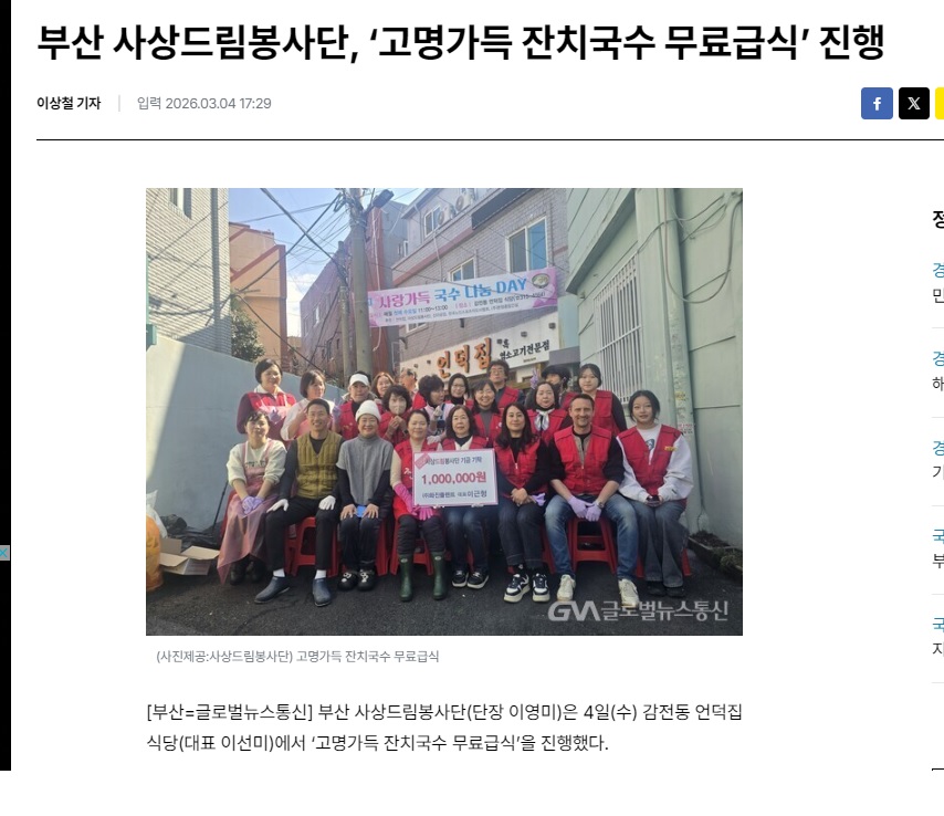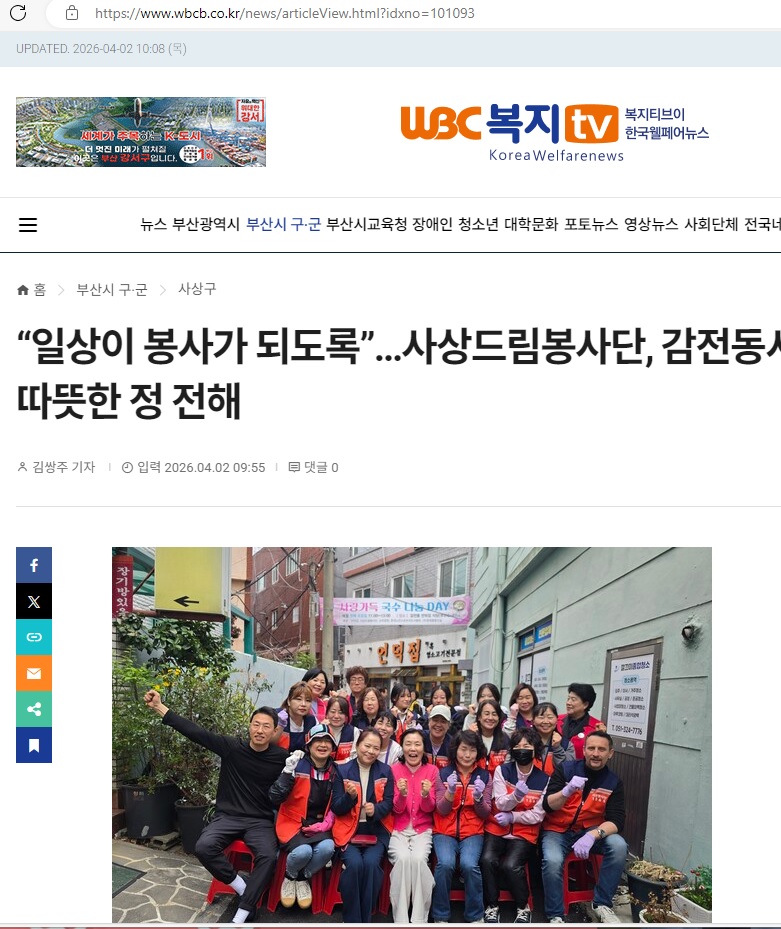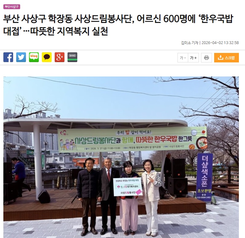 사상드림봉사단이 준비한 덕포1동 지역 어르신들을 위한 한우국밥 나눔 봉사 관련 보도가 나왔습니다. 모두들 애써주셔서 감사합니다.